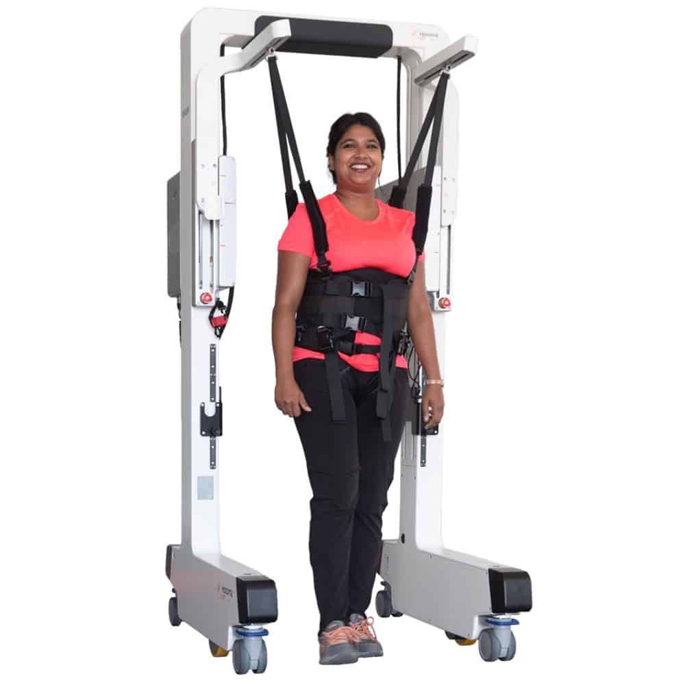 เป็นอุปกรณ์หุ่นยนต์เคลื่อนที่ที่เชื่อมต่อการฝึกเดินระหว่างลู่วิ่งและการเดินบนพื้นจริง โดยมีระบบพยุงน้ำหนักตัวแบบไดนามิกที่ปรับได้ตามแต่ละบุคคล ช่วยให้ผู้ป่วยสามารถเดินได้อย่างปลอดภัยโดยไม่ต้องใช้มือพยุง ลดความเสี่ยงในการล้ม และลดภาระของนักบำบัดในการสนับสนุนผู้ป่วยด้วยตนเอง