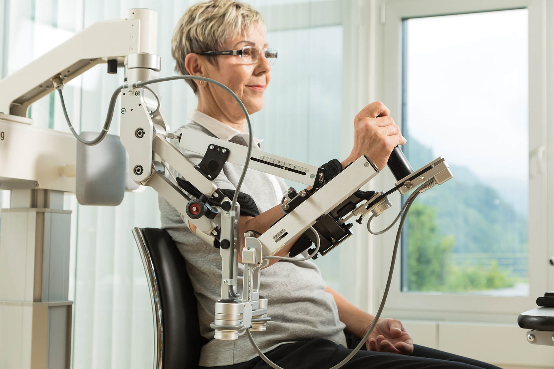 ใช้ฝึกการทำงานและการเคลื่อนไหวของแขนและมือสำหรับผู้ป่วยที่สูญเสียความสามารถในการทำงานของรยางค์ส่วนบน เนื่องจากความผิดปกติของระบบประสาทส่วนกลางหรือประสาทส่วนปลาย ไขสันหลัง และโรคของระบบกล้ามเนื้อหรือกระดูก อุปกรณ์ฝึกนี้ช่วยส่งเสริมการฟื้นฟูสมรรถภาพ โดยการออกกำลังเฉพาะส่วน เพื่อเพิ่มความแข็งแรงของกล้ามเนื้อและช่วงการเคลื่อนไหวของข้อต่อ ส่งเสริมให้เกิดการฟื้นฟูการทำงานของร่างกาย นอกจากนี้ยังช่วยให้ผู้ปฏิบัติงานทางคลินิกสามารถประเมินการเปลี่ยนแปลงและติดตามความก้าวหน้าในการฟื้นฟูสมรรถภาพได้