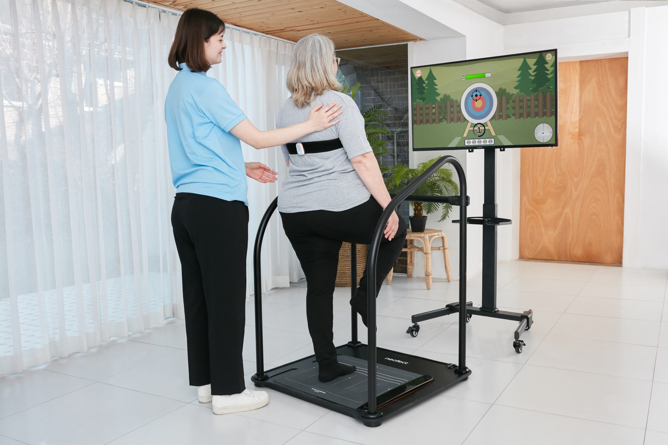 เป็นอุปกรณ์ฟื้นฟูสมรรถภาพแบบอินเทอร์แอคทีฟที่ออกแบบมาเพื่อประเมินและปรับปรุงความมั่นคงและสมดุลของร่างกายส่วนล่าง ด้วยเทคโนโลยีความจริงเสริม (AR) มี real-time feedback ช่วยให้ผู้ป่วยฝึกสมดุลจากท่านั่ง ยืน และก้าวเดิน เหมาะสำหรับการฟื้นฟูหลังโรคหลอดเลือดสมอง การฟื้นฟูระบบกล้ามเนื้อและกระดูก และการดูแลผู้สูงอายุ รองรับการบำบัดทั้งในคลินิกและที่บ้าน พร้อมการติดตามความก้าวหน้าทางระยะไกล