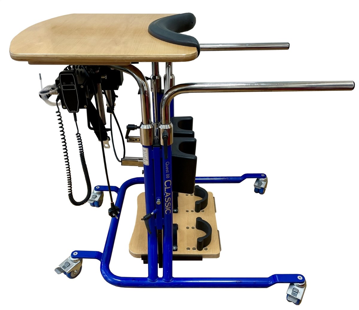 สำหรับเป็นอุปกรณ์ในการช่วยผู้ป่วยให้ยืนเพื่อทำการฝึกกายภาพบำบัดได้ โดยมีอุปกรณ์ช่วยในการฉุดรั้งผู้ป่วยขึ้นมาจากรถเข็น หรือเก้าอี้ได้ และอุปกรณ์มีความปลอดภัย มั่นคง ทำให้ผู้ป่วยมีความมั่นใจในการยืนมากขึ้น